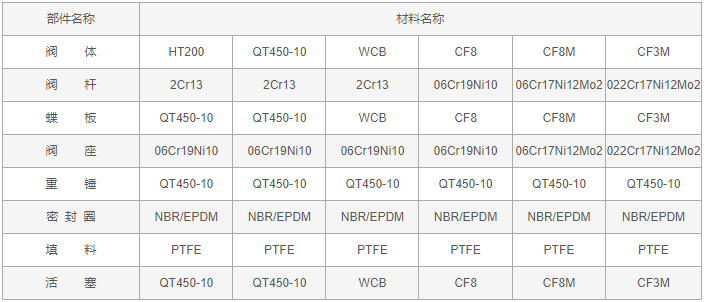 蝶式緩沖止回閥零件材料: