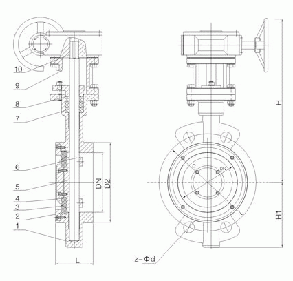 陶瓷對夾蝶閥外形結(jié)構(gòu)圖:
