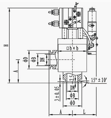GDQ-J(b)-A型氣動(dòng)高真空擋板閥外形結(jié)構(gòu)圖: