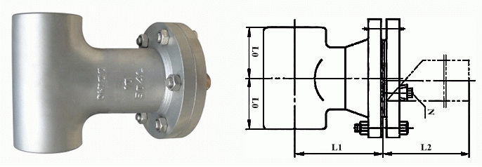 焊接直流式T型過濾器外形結(jié)構(gòu)圖:
