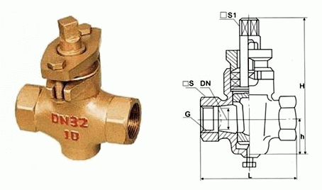 二通內(nèi)螺紋全銅旋塞閥外形結(jié)構(gòu)圖: