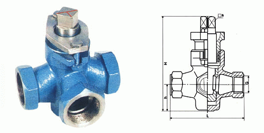 三通內(nèi)螺紋不銹鋼旋塞閥工作原理: