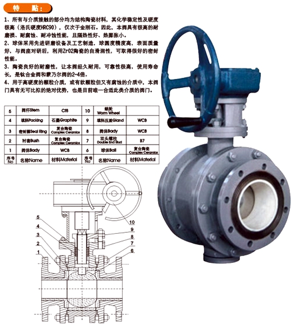 蝸輪陶瓷球閥描述及結(jié)構(gòu)圖