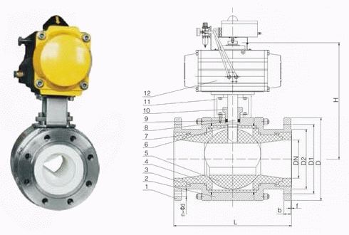 陶瓷氣動V型調節(jié)球閥外形結構圖: