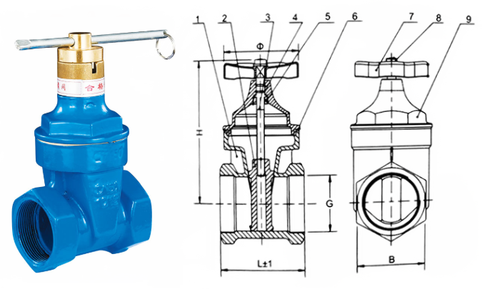 加密軟密封表前絲口閘閥外形結(jié)構(gòu)圖: