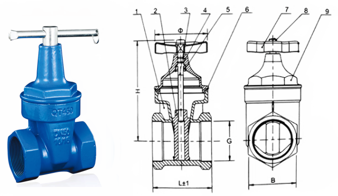 軟密封絲口鎖閉閘閥外形結(jié)構(gòu)圖: