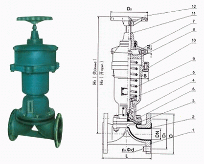 3、視膠隔膜閥的閥體內(nèi)腔表面視復(fù)有廳供選擇的多種橡膠。因此具有優(yōu)越的耐腐蝕的特點(diǎn)。