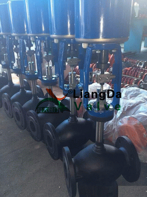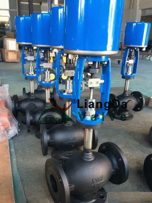 電動三通閥配以電子驅(qū)動控制裝置后,能調(diào)節(jié)蒸汽或冷、熱水的流量,廣泛應(yīng)用于中央空調(diào)、采暖、水處理、工業(yè)的流體控制。驅(qū)動器是由可逆同步馬達(dá)驅(qū)動,并帶磁性離合器。馬達(dá)通過馬達(dá)轉(zhuǎn)子與離合器所產(chǎn)生的磁性作用,能在停頓的情況下產(chǎn)生穩(wěn)定的扭矩。故此當(dāng)馬達(dá)沒有電流通過時能穩(wěn)定地停頓在任何一點(diǎn),當(dāng)閥門全開或全關(guān)時磁離合器分離,停止調(diào)節(jié)。驅(qū)動器的遞增式或比例式控制器所發(fā)訊號能使馬達(dá)順時轉(zhuǎn)動或逆時轉(zhuǎn)動。電動三通閥產(chǎn)品實物圖:
