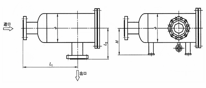 臥式過濾器是一種臥式安裝適用于介質(zhì)為液體的管道用籃式過濾器,由封頭和筒體組成殼體,其左側(cè)和正面方向分別設(shè)有流體進口和出口,殼體內(nèi)置有有利于機械雜質(zhì)分離沉降的濾芯,并經(jīng)側(cè)蓋和殼體右側(cè)端蓋法蘭通過緊固螺母壓緊固定,工作時,待處理液體從左側(cè)進液口進入過濾器內(nèi),經(jīng)過置有一定規(guī)格濾網(wǎng)的濾筒后將固體雜質(zhì)濾除掉,從出液口流出即可,當(dāng)需要清洗時,只要將可拆卸的側(cè)蓋打開,把濾芯從筒體內(nèi)抽出,處理后重新裝入即可,因此,使用維護極為方便。