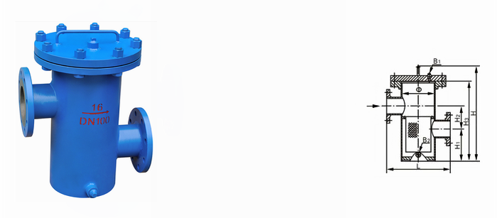 高低平底籃式過濾器外形結(jié)構(gòu)圖: