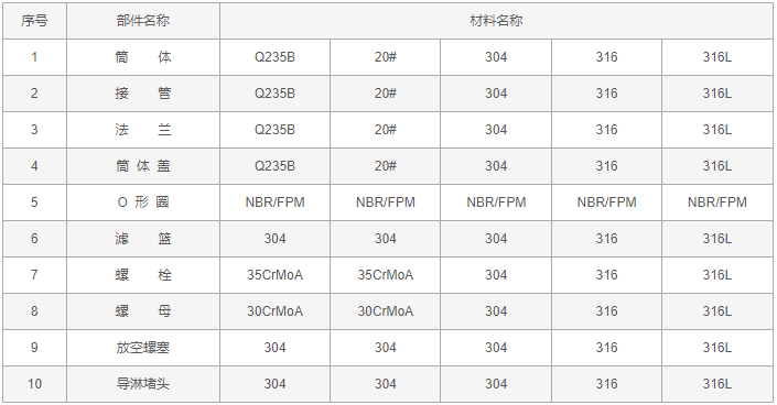直通籃式防內(nèi)漏過(guò)濾器零件材料: