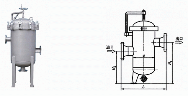 立式高低正濾式快開過濾器外形結(jié)構(gòu)圖: