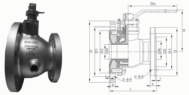 1、在關(guān)閉位置,球體受閥桿的機(jī)械施壓作用,緊壓在閥座上。