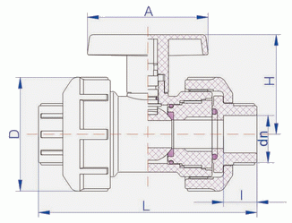 Q61F-16S承插式塑料球閥外形結構與連接尺寸: