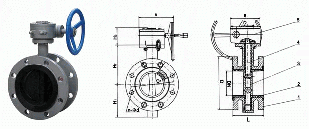 法蘭式襯膠蝶閥外形結(jié)構(gòu)圖: