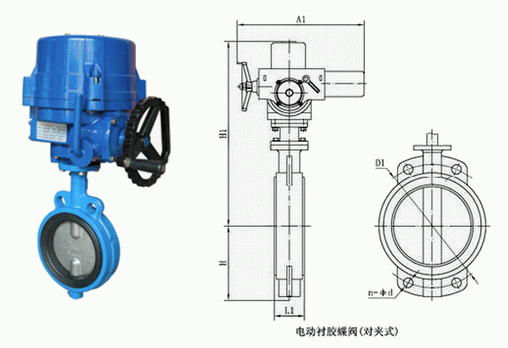 電動襯膠蝶閥外形結(jié)構(gòu)圖: