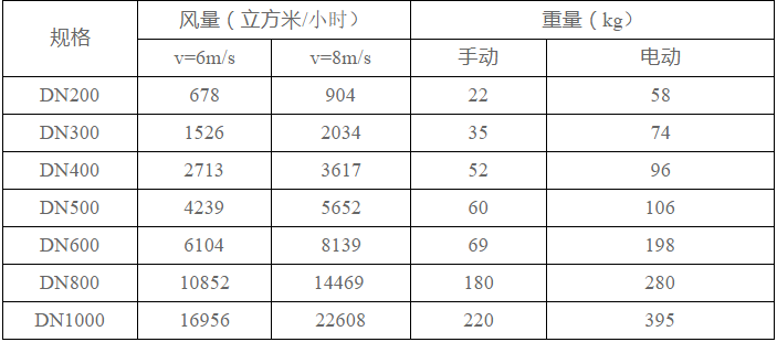 單連桿手動密閉閥風(fēng)量參數(shù):
