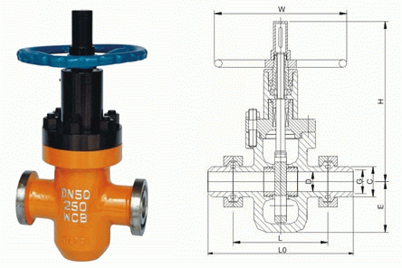 高壓卡箍平板閘閥外形結(jié)構(gòu)圖: