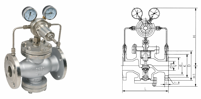 氮氣減壓閥外形結(jié)構(gòu)圖: