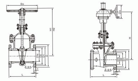 法蘭襯膠閘閥連接尺寸:
