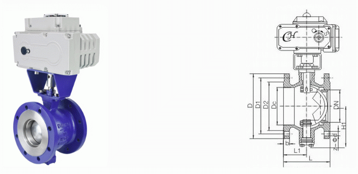 電動V型法蘭球閥外形結(jié)構(gòu)圖: