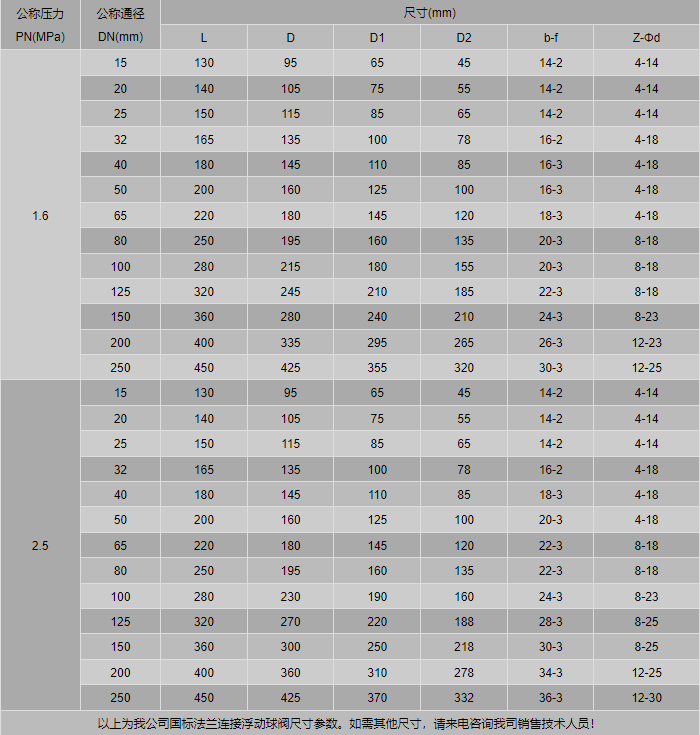 316Ti法蘭球閥外形尺寸表: