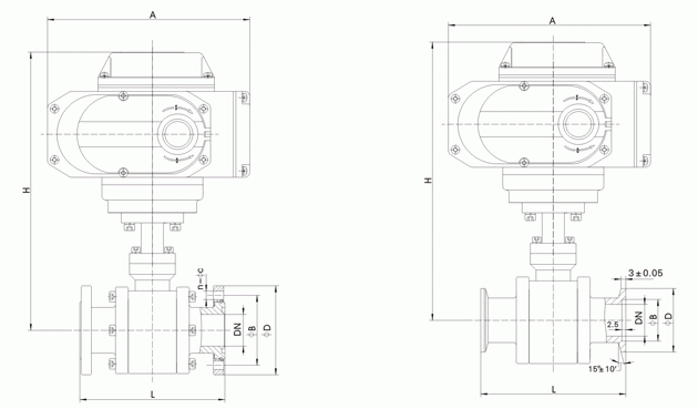 電動(dòng)高真空(壓力)球閥連接尺寸:
