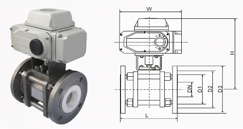 陶瓷電動(dòng)球閥外形結(jié)構(gòu)圖: