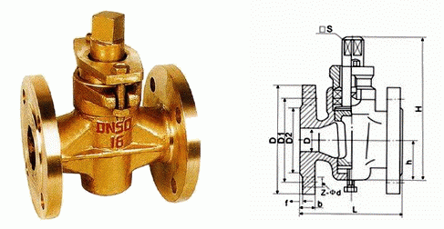 二通全銅旋塞閥外形結(jié)構(gòu)圖: