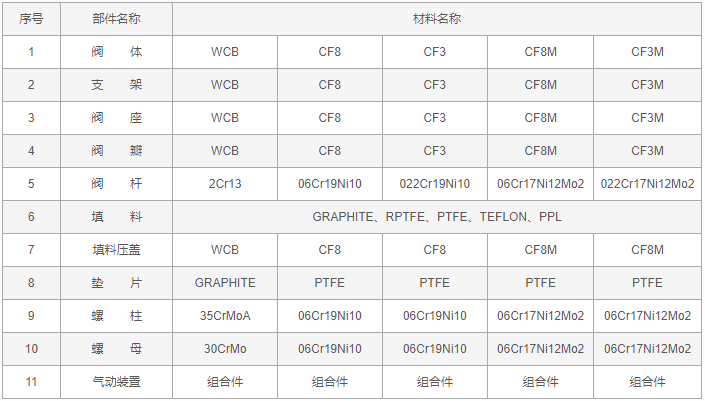 反應(yīng)釜?dú)鈩?dòng)放料閥零件材料: