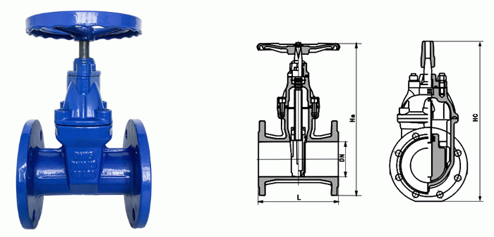 彈性座封閘閥外形結(jié)構(gòu)圖: