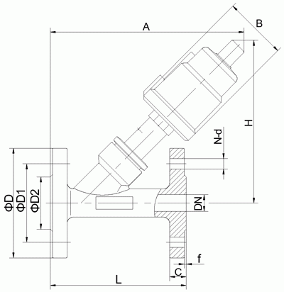 法蘭氣動(dòng)角座閥外形結(jié)構(gòu)圖:
