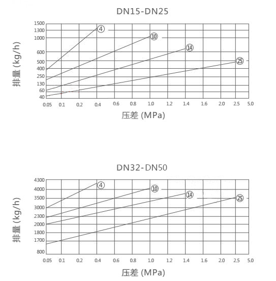 杠桿浮球式內(nèi)螺紋蒸汽疏水閥排量圖: