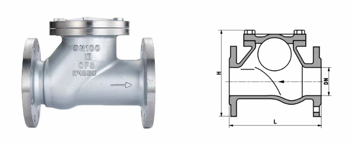 不銹鋼滑道滾球式止回閥外形結(jié)構(gòu)圖:
