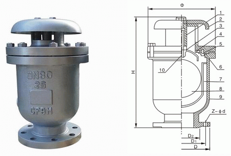 組合式快速進(jìn)排氣閥是一種由閥體、浮球、升降罩、排氣孔密封組件、閥蓋及排氣罩等組成,具有一大一小兩個(gè)排氣孔的進(jìn)排氣閥,其當(dāng)管道空管沖水時(shí),在工作壓力下可自動快速排出管道中集結(jié)的空氣:當(dāng)管道內(nèi)產(chǎn)生負(fù)壓時(shí)可自動進(jìn)氣,排氣后能夠自動封水。本產(chǎn)品有整體式和分體式兩種,整體式在管內(nèi)正常輸水,浮球上端與閥體間形成壓力氣囊時(shí),浮球能及時(shí)靈活下降,在工作壓力下,打開閥門的小孔將壓力氣囊內(nèi)的氣體排凈。