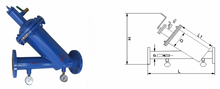 手搖刷式除污器要由殼體、端蓋、濾筒濾網(wǎng)、帶手柄的不銹鋼刷或毛刷、排污閥及壓力表等部件組成。其濾筒放置在殼體內(nèi),并通過端蓋采用螺栓螺母壓緊固定,濾網(wǎng)裝在濾筒內(nèi),在濾網(wǎng)內(nèi)還有一帶轉(zhuǎn)動軸的不銹鋼刷或毛刷,刷子緊貼在濾網(wǎng)上,轉(zhuǎn)軸在筒體外有一搖手,在端蓋與轉(zhuǎn)動軸連接處還有一排污閥,排污閥一般為手動球閥。當需要清洗濾網(wǎng)上雜質(zhì)時,搖動搖手,帶動轉(zhuǎn)軸和刷子旋轉(zhuǎn),將濾網(wǎng)上雜質(zhì)刷下,同時打開排污閥,在管道介質(zhì)壓力的作用下,將雜質(zhì)從排污閥排出,完成清洗過程。