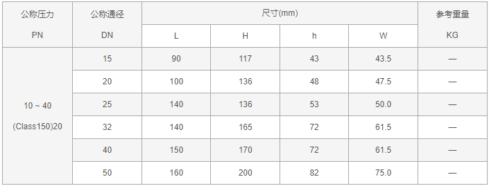 可調(diào)恒溫式蒸汽疏水閥外形尺寸表:
