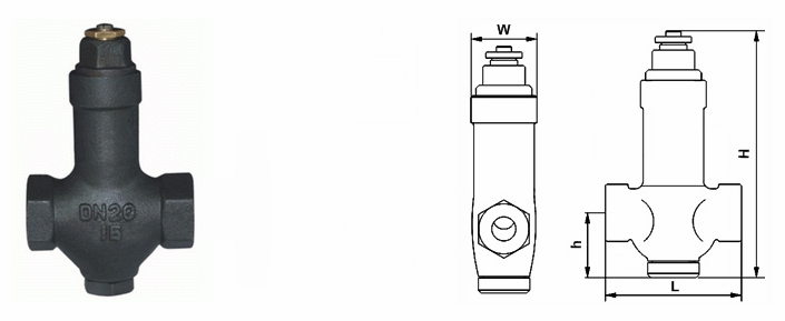 可調(diào)恒溫式蒸汽疏水閥外形結(jié)構(gòu)圖: