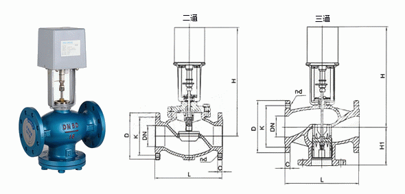 9、閥體結構形式有兩通閥(單座)、兩通平衡閥(平衡式)、三通合流和三通分流閥。