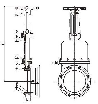暗桿陶瓷漿液閥外形結(jié)構(gòu)圖: