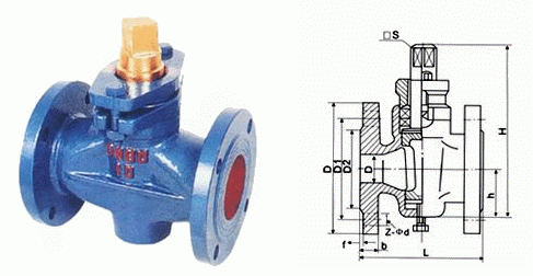 二通銅芯旋塞閥外形結(jié)構(gòu)圖: