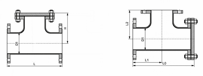 T型襯四氟過濾器外形結(jié)構(gòu)圖: