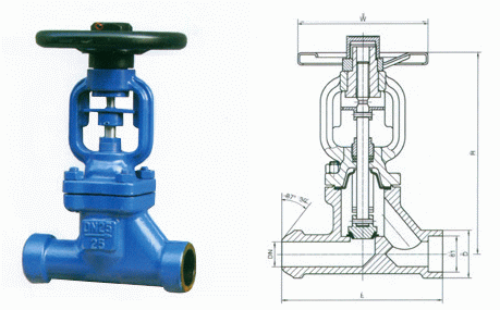 焊接波紋管截止閥外形結(jié)構(gòu)圖: