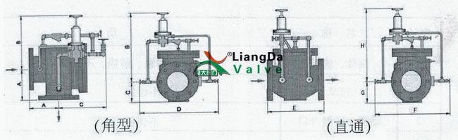 直通式水擊泄放閥外形結(jié)構(gòu)圖: