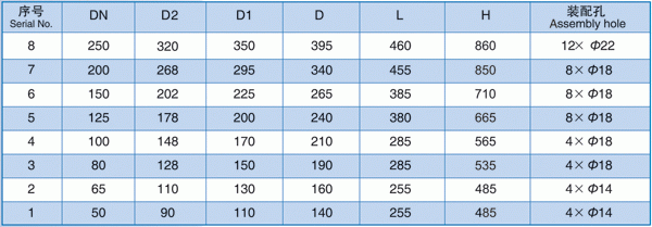 注:法蘭執(zhí)行標準:GB2501-89,DN50-DN150公稱工作壓力0.6Mpa,