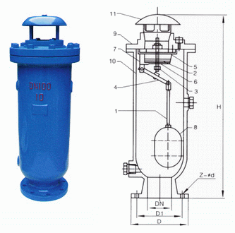 污水復(fù)合式排氣閥外形結(jié)構(gòu)圖:
