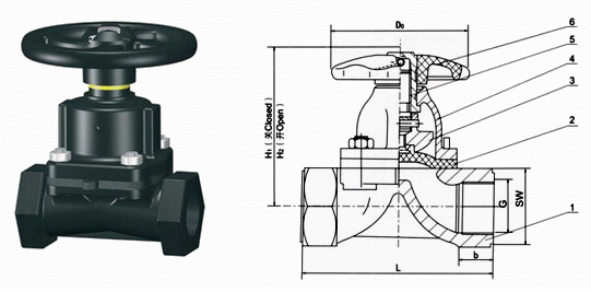 絲口隔膜閥外形結(jié)構(gòu)圖: