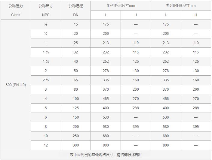 高壓Y型過(guò)濾器外形尺寸表: