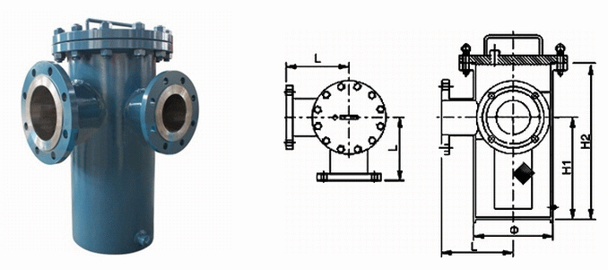 角通籃式過(guò)濾器外形結(jié)構(gòu)圖: