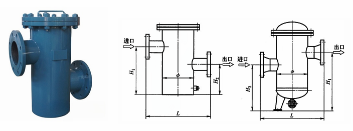 立式高低接管正濾式普通過濾器設(shè)計與制造、檢驗及驗收符合《JB/T 7538-2016管道用籃式過濾器》標(biāo)準(zhǔn),其過濾芯濾筒用碳素結(jié)構(gòu)鋼熱軋鋼板或不銹鋼冷軋鋼板沖制而成。濾筒采用碳素結(jié)構(gòu)鋼熱軋鋼板時,整體鍍鋅鈍化;濾筒采用不銹鋼冷軋鋼板時,進(jìn)行酸洗鈍化等表面處理。鋼板化學(xué)成分及力學(xué)性能符合GB/T 710、GB/T 3280的規(guī)定。